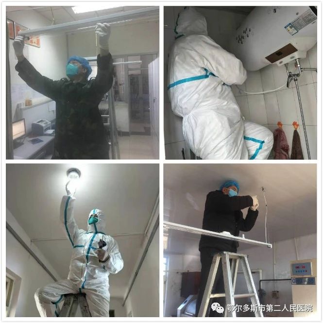 從“集結(jié)號”吹響伊始,為更好防控新冠肺炎疫情,共產(chǎn)黨員齊衛(wèi)東、王利斌、郝文杰和張冰帶領(lǐng)著“二院后勤人”團結(jié)協(xié)作,不怕苦,不怕累,為應(yīng)對本次疫情的醫(yī)護人員提供強有力的后勤保障,協(xié)調(diào)餐廳,配備指定的送餐人員,為隔離病區(qū)、隔離公寓、指揮部、后勤保障人員等送餐,最多時單天送餐160余份,封閉東勝院區(qū)所有房間的地漏和排氣管道,配合指揮部捐贈組完成疫情期間物資捐贈管理、派發(fā)、搬運、卸車、裝車等工作。1月24日上午,醫(yī)院緊急決定將公寓樓三樓全部騰空,隔離病區(qū)醫(yī)務(wù)人員宿舍區(qū)域,“后勤人”連夜對公寓樓進行改造,同時進行接電、安裝門鎖等相關(guān)工作。醫(yī)院決定緊急將呼吸病區(qū)搬遷至空港院區(qū),接到命令后“后勤人”積極參與到相關(guān)工作之中,用最短時間完成了工作。當(dāng)一切工作都處置妥當(dāng)之時,時間已來到了敲響新年鐘聲的時候......