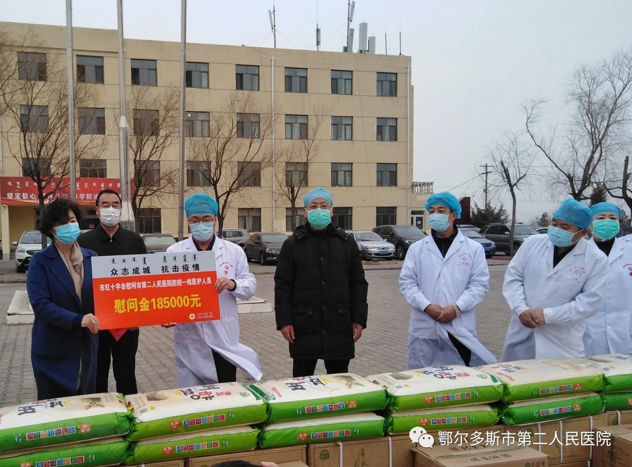捐贈儀式上,鄂爾多斯市紅十字會黨組書記、常務(wù)副會長閆美蓉首先代表市紅十字會慰問了戰(zhàn)斗在臨床第一線的鄂爾多斯市第二人民醫(yī)院的醫(yī)護(hù)人員,并給他們送來慰問金185000元,并同時慰問了醫(yī)院的廣大職工,慰問金5000元。向鄂爾多斯市第二人民醫(yī)院、鄂爾多斯市疾控中心捐贈20000元慰問物資(米、面等)。愛心企業(yè)鄂爾多斯市呼能煤炭集團(tuán)有限責(zé)任公司通過鄂爾多斯市紅十字會定向向鄂爾多斯市第二人民醫(yī)院捐贈500萬元,用于本次疫情防控。鄂爾多斯市兆豐糧油有限公司向鄂爾多斯市第二人民醫(yī)院、鄂爾多斯市疾控中心捐贈價值10000元礦泉水。