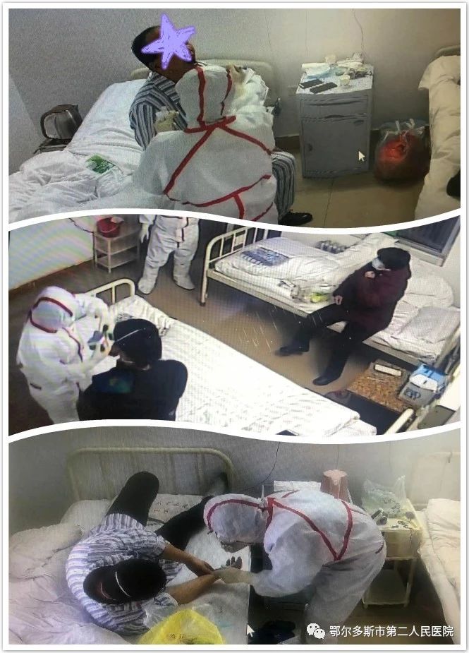 清晨7點,一天的工作就已拉開了序幕,上傳病程記錄、舌像、面相等,8點前完成相關(guān)工作,以便為專家組的會診提供相關(guān)依據(jù)。確診患者從1個到10個我們經(jīng)歷了很多,面對每日里巨大的工作量,我們的護理團隊,每天要在隔離病房工作8小時以上,24小時一個班次。穿著防護服的她們,行色匆匆的穿梭于一間間的隔離病房,但是,沒有一位護士叫苦叫累,同時還要承擔起安撫患者,給他(她)們做心理疏導,穩(wěn)定患者的情緒,讓他們積極配合治療的工作任務(wù),每日里我們的白衣天使們除了要把患者生活垃圾和醫(yī)療垃圾運出隔離病房,還要對患者的排泄物進行消毒,進行無害化處理。護士長張孝梅和高巧玲護士,自1月24日至今,一直都堅持在臨床一線,至今已經(jīng)過14個日夜。“疫情不解除,我們不出倉”這是她們共同的心聲。肝病科護士長沈紅霞,患有很嚴重的類風濕,還在吃藥治療期間的她,在接到指令時,立即奔赴臨床一線,每日里在完成規(guī)定的常規(guī)護理的工作任務(wù)之余,常常與團隊其他人員進行著溝通,鼓勵她們,為她們打氣。手術(shù)室護士長阿嘎茹,每天需要穿著隔離防護服在隔離病房完成具體工作,一進去就4——5個小時,當她退出隔離病房脫掉隔離衣消毒完畢后脫下口罩的時候,由于缺氧、高溫而造成水腫和過敏,導致她的臉都被口罩勒的有些變形。作為本次護理團隊中唯一的男護士徐強,更是有戰(zhàn)必上,主動擔當,進入隔離病區(qū)以來,多次進入隔離病房為患者進行治療和服務(wù),最多的一天他進出隔離病房5次!