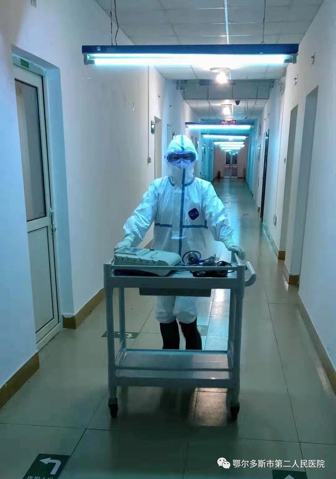 2020年1月31日接到上級通知有一位確診患者要從達旗人民醫(yī)院轉(zhuǎn)入我院進行治療,20:10分第二小組劉振堂組長與護士趙曄出發(fā)去達旗人民醫(yī)院接患者來我院,23:22分患者轉(zhuǎn)入我院隔離病區(qū)進行治療,接下來的幾天里我們共分四批次從達旗人民醫(yī)院接回共計9名確診患者進入隔離病區(qū)進行治療。