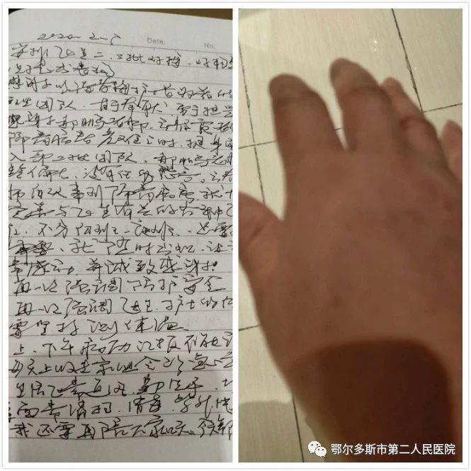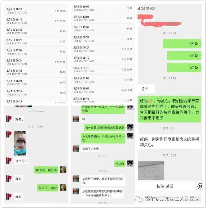 2020年2月3日,面對患者激增的情況,醫(yī)務(wù)人員短缺,在最需要支援的時候,夜晚來到的郝鵬、云春霞兩位醫(yī)師的及時加入,極大地緩解了我們的工作壓力。當指揮部撥通郝鵬、云春霞電話時,‘郝大夫在那?請速來東勝部隔離病區(qū)進入一線……’‘好的,馬上交接一下工作,立即到’。云大夫在哪?請速來東勝院區(qū)隔離病區(qū)進入一線……’‘我馬上給我婆婆打電話讓她來給我看孩子,婆婆到了之后馬上去醫(yī)院。當他們完成最后一位患者的首次病程錄入時,時針已指向午夜2:30分......