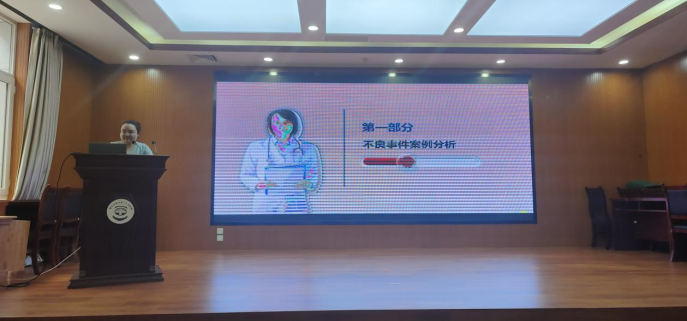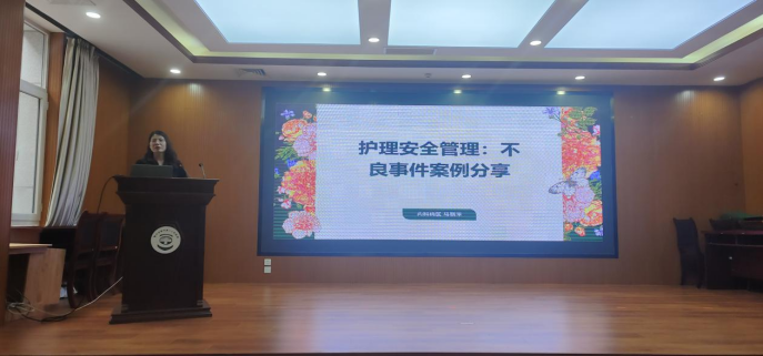會上,東勝部內(nèi)科病區(qū)護士長馬麗萍聚焦護理安全管理,結合實際案例講解不良事件、患者安全目標以及防范應對措施,強化了護理人員的安全管理意識。