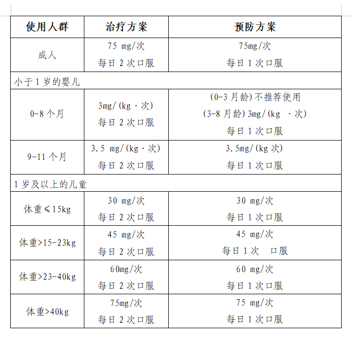 2.為減少耐藥病毒株的出現(xiàn),不推薦常規(guī)使用奧司他韋預(yù)防流感,不鼓勵(lì)因社區(qū)、學(xué)校等流感流行而對(duì)健康兒童或成人使用奧司他韋進(jìn)行預(yù)防(推薦在密切接觸后預(yù)防)。