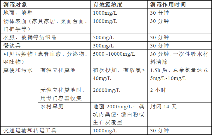 各種情況下含氯消毒劑的推薦使用濃度如下↓↓