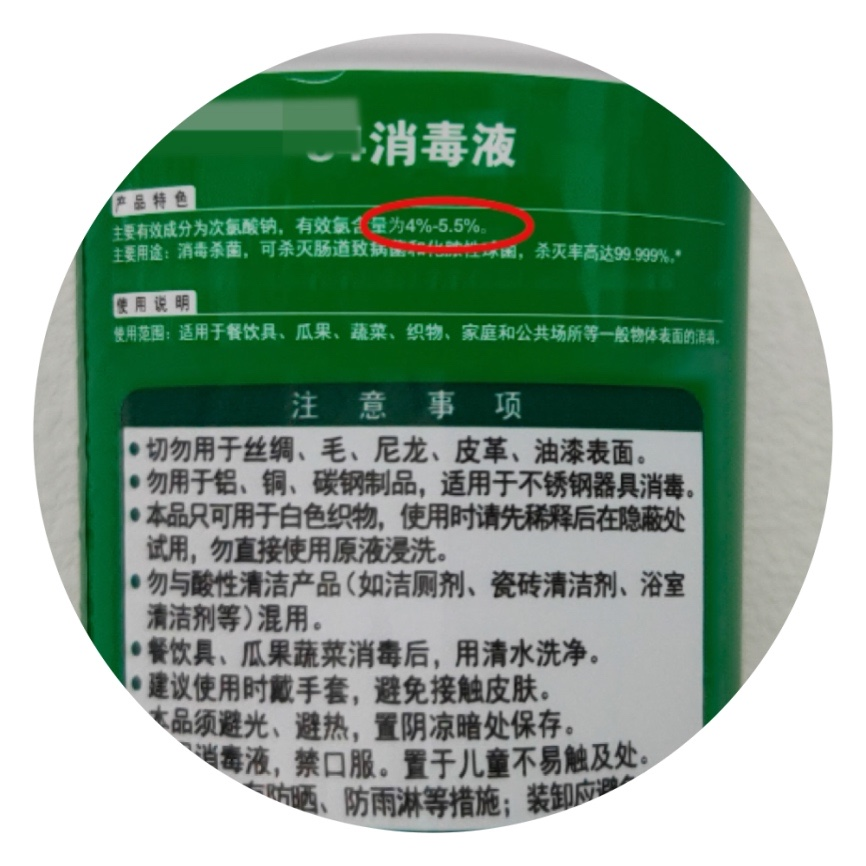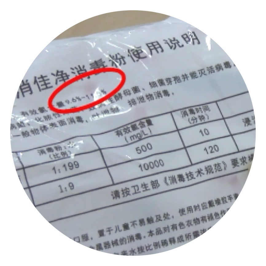 大面積物體表面擦拭或者大面積拖地請選用含氯消毒劑。注意有效氯濃度是要達到500mg/L哦!(問題來了!含氯消毒劑具體怎么配呀?能示范一下嗎?)