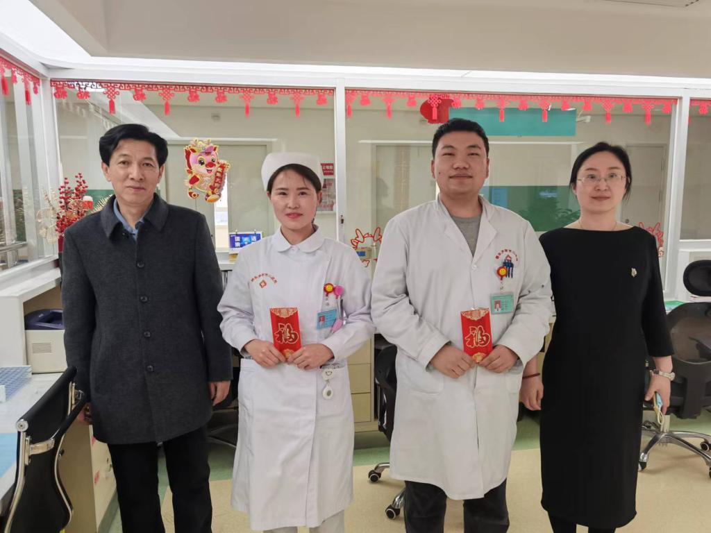 2024年2月9日,農歷除夕夜,市第二人民醫(yī)院黨委書記溫潔凱、院長李樹林、副院長譚明鈞、總會計師田琳等在除夕夜到各科室慰問一線醫(yī)務人員和物業(yè)人員,代表醫(yī)院為他們送上新春祝福。
