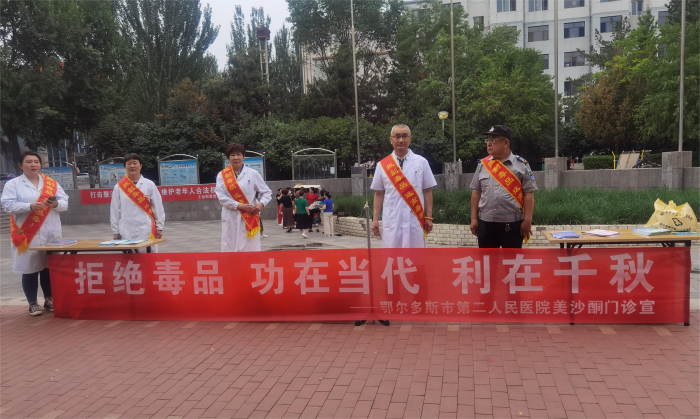 2022年6月26日是第35個國際禁毒日,鄂爾多斯市第二人民醫(yī)院組織美沙酮維持治療門診醫(yī)務(wù)人員在東勝區(qū)消防廣場開展了以“禁毒、防毒、遠(yuǎn)離毒品”為主題的宣傳活動。活動中,通過發(fā)放宣傳折頁、紀(jì)念品等給市民普及禁毒知識。