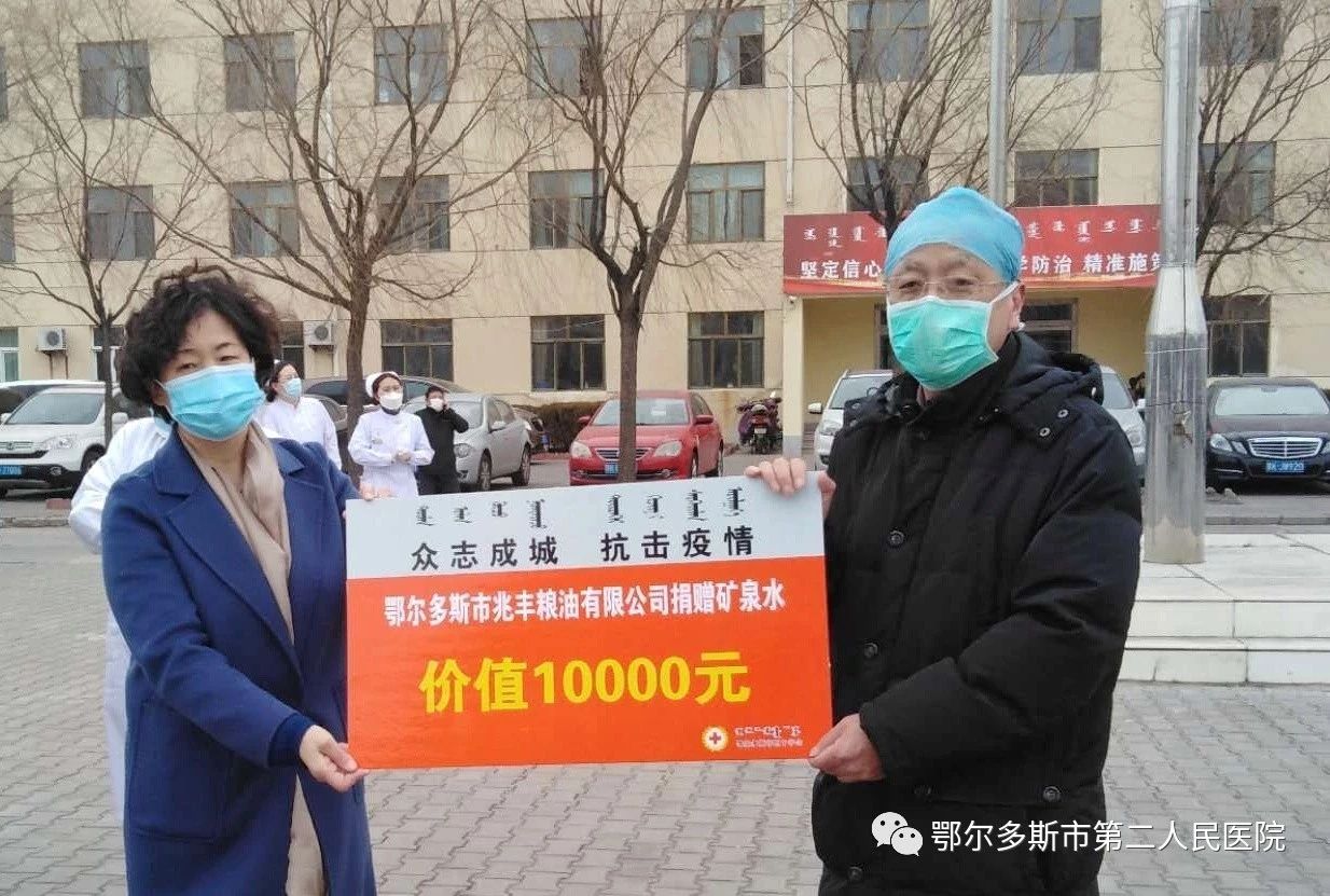 捐贈儀式上,鄂爾多斯市紅十字會黨組書記、常務(wù)副會長閆美蓉首先代表市紅十字會慰問了戰(zhàn)斗在臨床第一線的鄂爾多斯市第二人民醫(yī)院的醫(yī)護(hù)人員,并給他們送來慰問金185000元,并同時慰問了醫(yī)院的廣大職工,慰問金5000元。向鄂爾多斯市第二人民醫(yī)院、鄂爾多斯市疾控中心捐贈20000元慰問物資(米、面等)。愛心企業(yè)鄂爾多斯市呼能煤炭集團(tuán)有限責(zé)任公司通過鄂爾多斯市紅十字會定向向鄂爾多斯市第二人民醫(yī)院捐贈500萬元,用于本次疫情防控。鄂爾多斯市兆豐糧油有限公司向鄂爾多斯市第二人民醫(yī)院、鄂爾多斯市疾控中心捐贈價值10000元礦泉水。