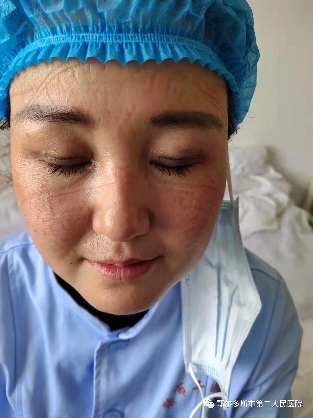 清晨7點,一天的工作就已拉開了序幕,上傳病程記錄、舌像、面相等,8點前完成相關(guān)工作,以便為專家組的會診提供相關(guān)依據(jù)。確診患者從1個到10個我們經(jīng)歷了很多,面對每日里巨大的工作量,我們的護理團隊,每天要在隔離病房工作8小時以上,24小時一個班次。穿著防護服的她們,行色匆匆的穿梭于一間間的隔離病房,但是,沒有一位護士叫苦叫累,同時還要承擔起安撫患者,給他(她)們做心理疏導,穩(wěn)定患者的情緒,讓他們積極配合治療的工作任務(wù),每日里我們的白衣天使們除了要把患者生活垃圾和醫(yī)療垃圾運出隔離病房,還要對患者的排泄物進行消毒,進行無害化處理。護士長張孝梅和高巧玲護士,自1月24日至今,一直都堅持在臨床一線,至今已經(jīng)過14個日夜。“疫情不解除,我們不出倉”這是她們共同的心聲。肝病科護士長沈紅霞,患有很嚴重的類風濕,還在吃藥治療期間的她,在接到指令時,立即奔赴臨床一線,每日里在完成規(guī)定的常規(guī)護理的工作任務(wù)之余,常常與團隊其他人員進行著溝通,鼓勵她們,為她們打氣。手術(shù)室護士長阿嘎茹,每天需要穿著隔離防護服在隔離病房完成具體工作,一進去就4——5個小時,當她退出隔離病房脫掉隔離衣消毒完畢后脫下口罩的時候,由于缺氧、高溫而造成水腫和過敏,導致她的臉都被口罩勒的有些變形。作為本次護理團隊中唯一的男護士徐強,更是有戰(zhàn)必上,主動擔當,進入隔離病區(qū)以來,多次進入隔離病房為患者進行治療和服務(wù),最多的一天他進出隔離病房5次!