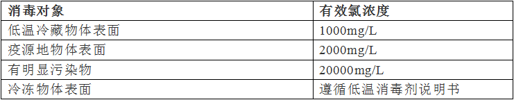 各種情況下含氯消毒劑的推薦使用濃度如下↓↓