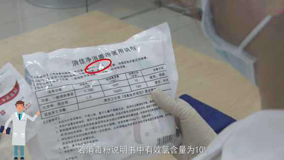 大面積物體表面擦拭或者大面積拖地請選用含氯消毒劑。注意有效氯濃度是要達到500mg/L哦!(問題來了!含氯消毒劑具體怎么配呀?能示范一下嗎?)