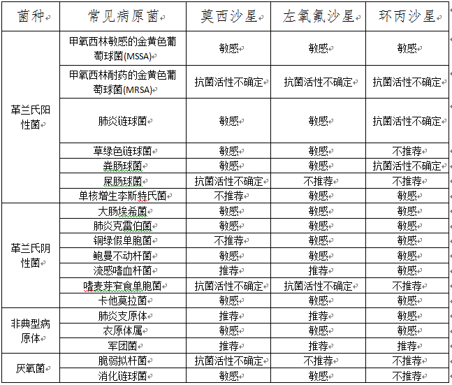 左氧氟沙星、莫西沙星、環(huán)丙沙星如何選擇